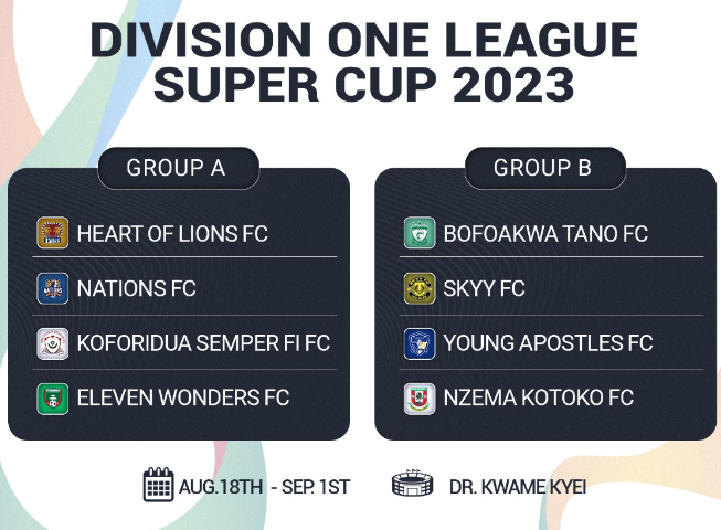 BetPawa Premier League-bound, Kpando Hearts of Lions and Nations FC have been placed in Group A of the 2023 Division One League Super Cup alongside Koforidua Semper FI and Eleven Wonders.