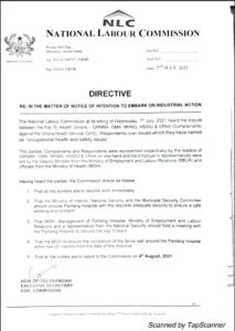 The Ministry of Health must also “ensure the completion of the fence wall around the Pantang Hospital within two (2) from the date of this directive,” the NLC said in the statement adding that: “That MOH, Management of Pantang Hospital, Ministry of Employment and Labour Relations and a representative from National Security should hold a meeting with the Pantang Hospital to discuss the way forward.”