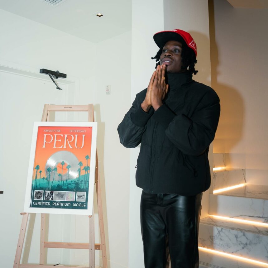 Fireboy’s 2022 banger Peru featuring Ed Sheeran is still enjoying massive airplay and streams as it attains certified platinum status.