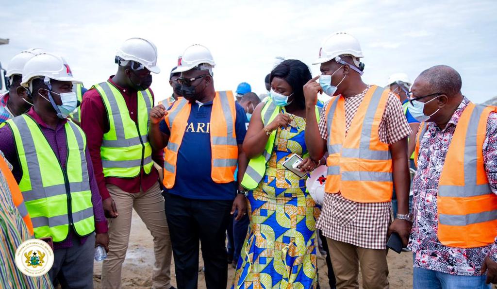 “I am in the ancient city of Cape Coast as part of my two-day working visit to the Central Region. The tour is aimed at receiving first-hand updates and monitoring the progress of coastal protection works being undertaken by various contractors of the Ministry”, said the Minister.