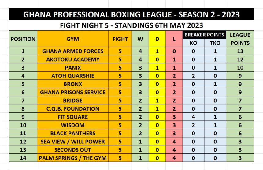 IMAX Boxing Promotions’ sponsored Ghana Professional Boxing League season 5 will be on break to make way for a ban on drumming and noise-making in the Greater Accra Region, which commences from Monday, May 15 to Thursday, June 15, 2023.