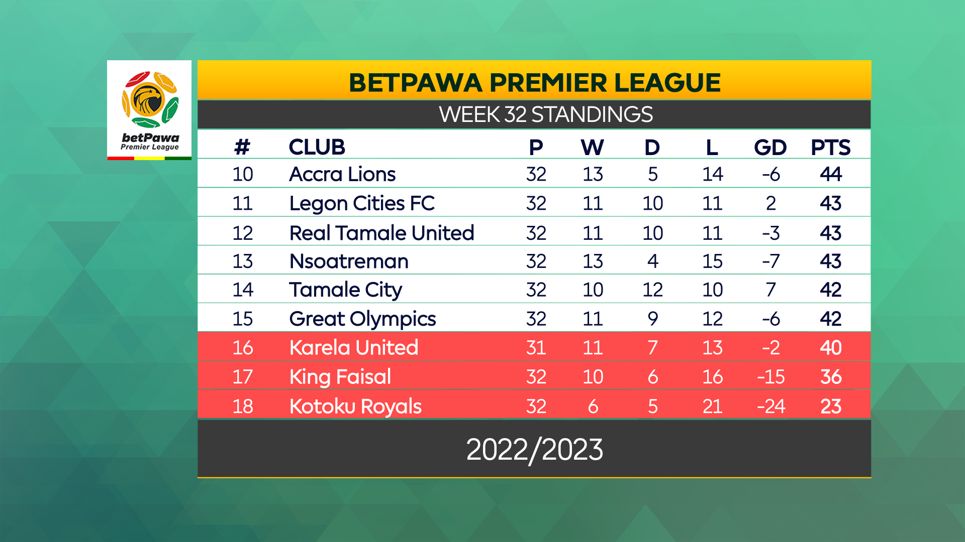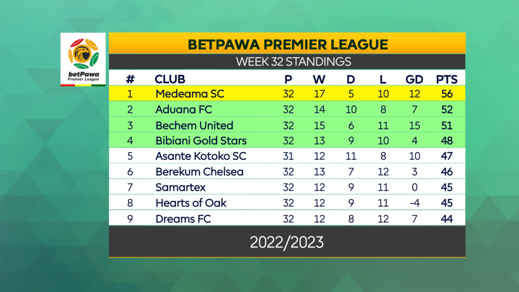 Week 32 of the BetPawa Premier League kicked off at Akoon Park in Tarkwa where Medeama Sporting Club came from behind to beat Alhaji Grusah’s Kumasi King Faisal 2-1 on Friday afternoon.