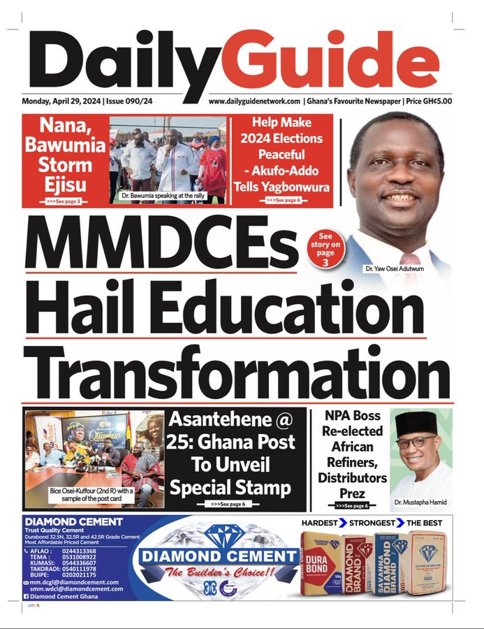 AfricaGhanaNewsPoliticsSportsTop Stories #MaxNewspaperHeadlines: Today’s front pages – Monday, April 29, 2024 By Michael Mensah Martey Published April 29, 2024 Share Today’s front pages – Monday, April 29, 2024 SHARE Max.com.gh brings you the front pages of the various newspapers across the country. In some headlines; Today’s front pages – Monday, April 29, 2024 Screenshot TAGGED:Newspaper Share This Article Facebook Twitter Whatsapp Whatsapp Email Print Share Previous Article #Ligue1: PSG bags third consecutive title Next Article Black Stars’ Physical Trainer Romeo Ricky Roy Dies Stay Connected 216.1k Like 48.4k Follow 1.4k Follow 67.8k Subscribe Latest News #BlackStarsAbroad: Yeboah nets third league goal as Forson, Thomas-Asante lose #Paris2024: Late Steph Curry show seals 5th gold USA #U20WAFUZoneB: Desmond Offei calls thirty-five players for camping #Paris2024: Bostwana set African record to win 4x400m silver - Advertisement -