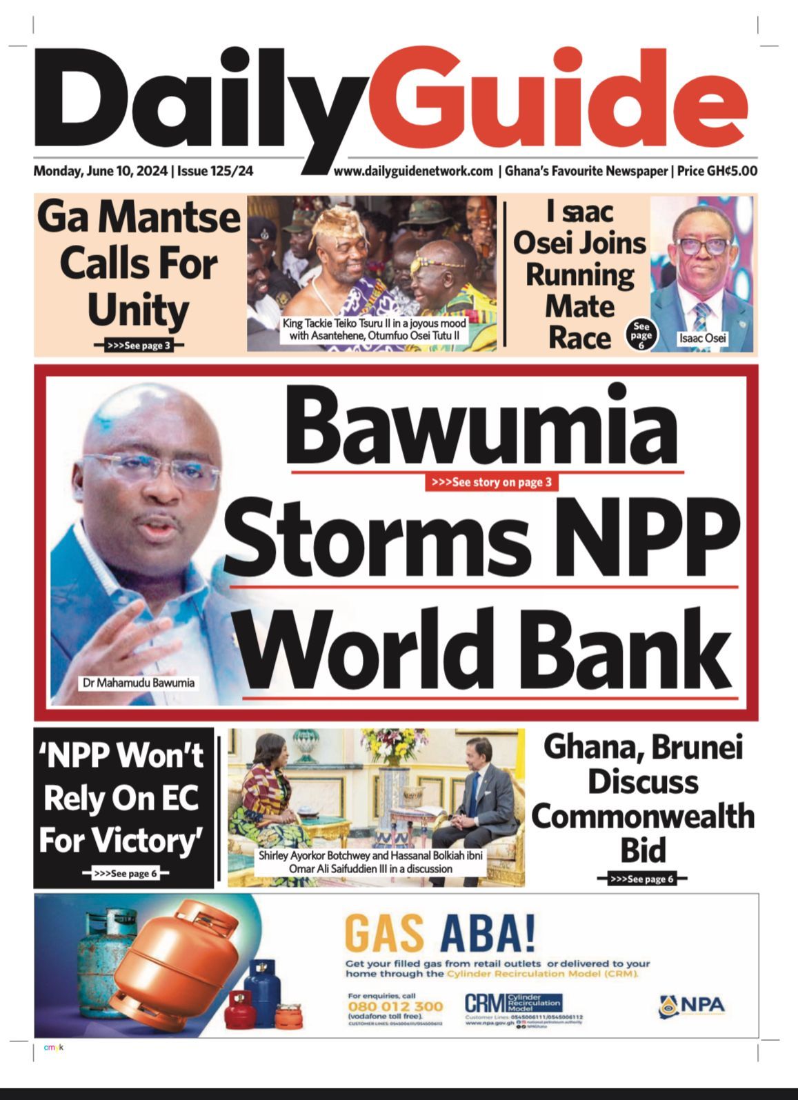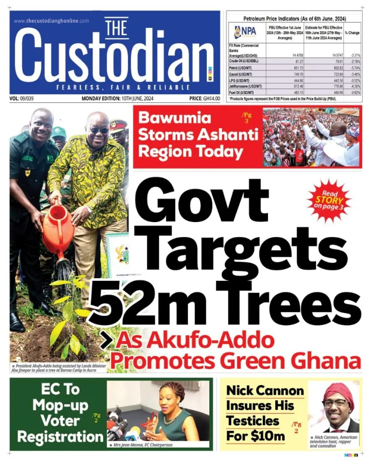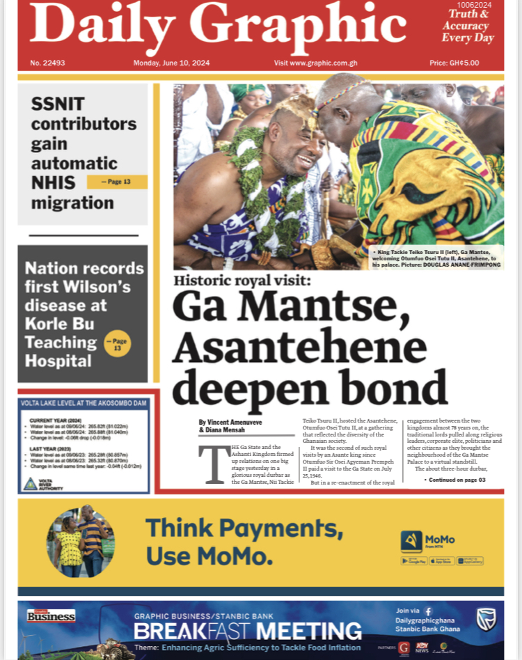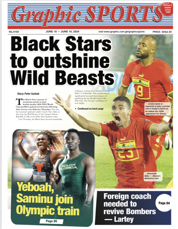 GhanaNewsPoliticsSportsTop Stories #MaxNewspaperHeadlines: Today’s front pages – Monday, June 10, 2024 By Michael Mensah Martey Published June 10, 2024 Share Today’s front pages – Monday, June 10, 2024 Max.com.gh brings you the front pages of the various newspapers across the country. In some headlines; Today’s front pages – Monday, June 10, 2024 TAGGED:Newspaper Share This Article Facebook Twitter Whatsapp Whatsapp Email Previous Article Ghana Vs CAR: Otto Addo warns against complacency Next Article #MAXNEWS: Asantehene Donates GHC500k to Ga Education Fund