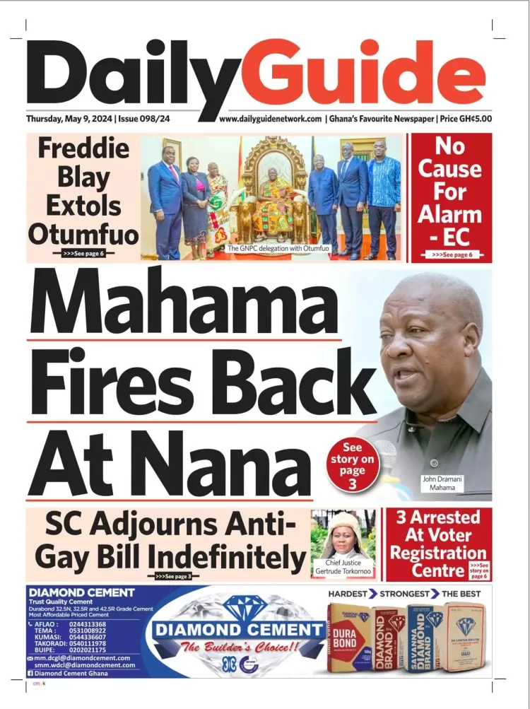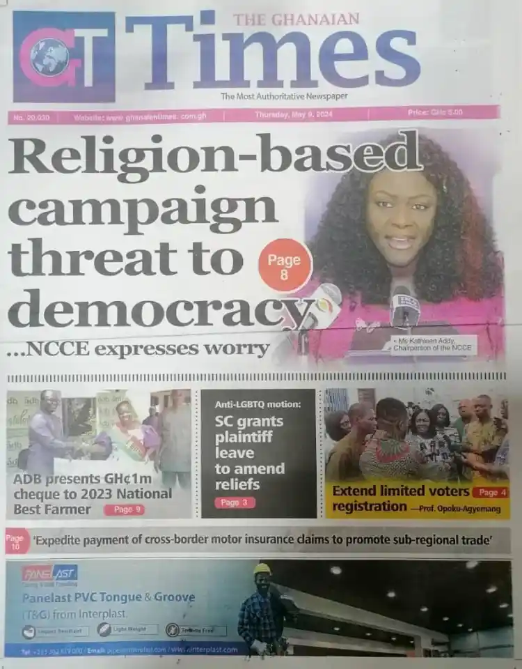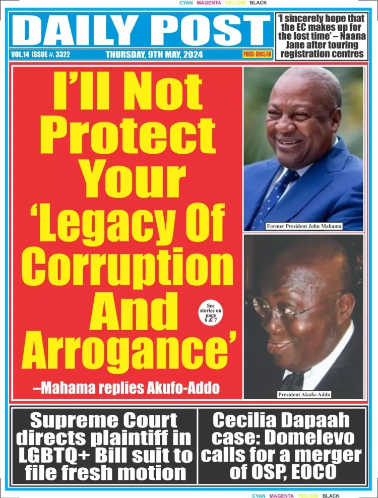 AfricaGhanaNewsPoliticsTop Stories #MaxNewspaperHeadlines: Today’s front pages – Thursday, May 9, 2024 By Michael Mensah Martey Published May 9, 2024 Share Max.com.gh brings you the front pages of the various newspapers across the country. In some headlines; TAGGED:Newspaper Share This Article Facebook Twitter Whatsapp Whatsapp Email Previous Article #UECLfinal: Fiorentina hold Club Brugge to book final spot Next Article Kuami Eugene, Keche, Joey B billed to perform at Ghana to the World concert in USA