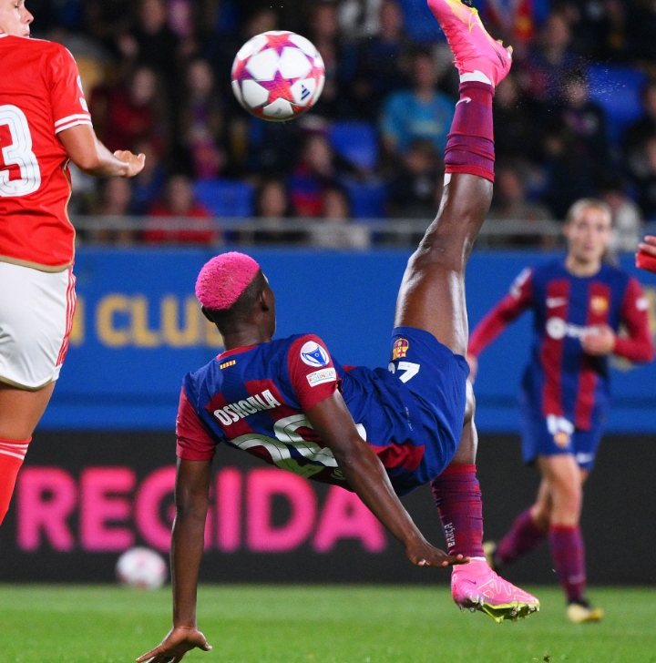 The acrobatic over-the-head goal scored by Barcelona forward, Asisat Oshoala, has won the UEFA Women’s Champions League (UWCL) Goal of the Week .