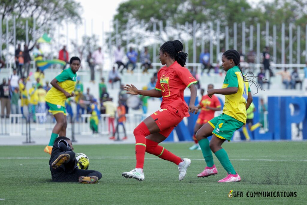 National TeamsNewsSportsTop Stories WAFCON 2023 Q: Black Queens made it rain goals on Rwanda By Michael Mensah Martey Published September 20, 2023 Share SHARE On Wednesday afternoon in Kigali, the Black Queens of Ghana put on a dominant display to defeat Rwanda 7-0. Ghana took the lead in the second minute of play when Doris Boaduwaa headed in a corner from captain Portia Boakye. In the ninth minute, Evelyn Badu added a second goal after receiving a beautiful pass from the middle. After a strong run and a cross from Justice Tweneboaa, Princella Adubea headed in Ghana’s third goal in the 28th minute. In the 64th minute, Evelyn Badu got her second goal and Ghana’s fifth goal as she Badu fired a low shot from the outside the box.After Rwanda’s goalkeeper made an error in judgment in the 75th minute, Anasthesia Achiaa scored a beautiful volley from the edge of the area. Mary Amponsah’s goal in the 78th minute was disallowed for offside. With her second goal of the game, Anasthesia Achiaa increased the score to 7-0 in the 86th minute. TAGGED:WAFCON 2023 Q Share This Article Facebook Twitter Whatsapp Whatsapp Email Print Share Previous Article MAX LIFESTYLE: Why do my palms always feel sweaty? Next Article UCL 2023/24: We have to be together and learn from our mistakes – Andre Onana Stay Connected 216.1k Like 48.4k Follow 1.4k Follow 67.8k Subscribe Latest News #BlackStarsAbroad: Yeboah nets third league goal as Forson, Thomas-Asante lose #Paris2024: Late Steph Curry show seals 5th gold USA #U20WAFUZoneB: Desmond Offei calls thirty-five players for camping #Paris2024: Bostwana set African record to win 4x400m silver - Advertisement -